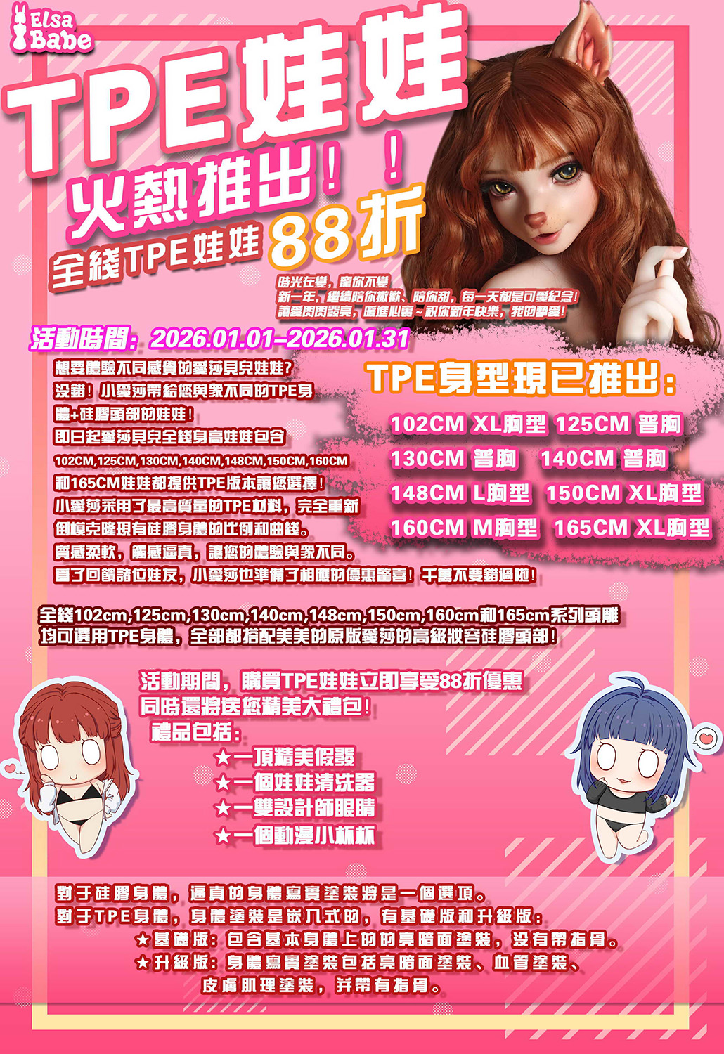 🎀 愛莎貝兒2026年1月究極優惠 🎀